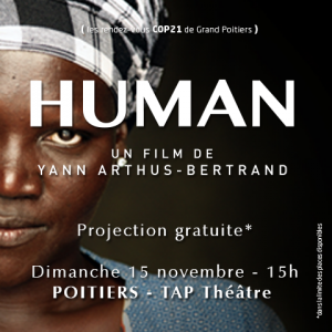 Human est projeté gratuitement ce dimanche 15 novembre au TAP de Poitiers, salle théâtre, à 15h. L’entrée est libre dans la limite des places disponibles. Ce film de Yann Arthus-Bertrand fait partie des différentes manifestations organisées par la ville de Poitiers dans le cadre de la COP 21. D’autres DVD de ce réalisateur sont disponibles …